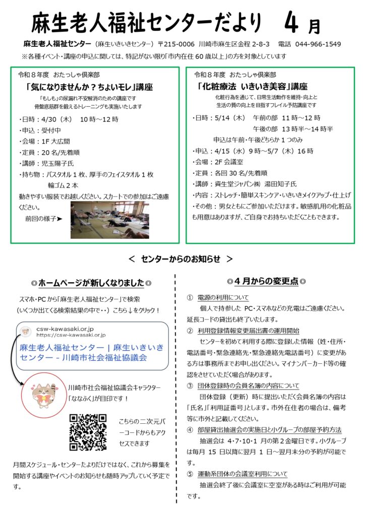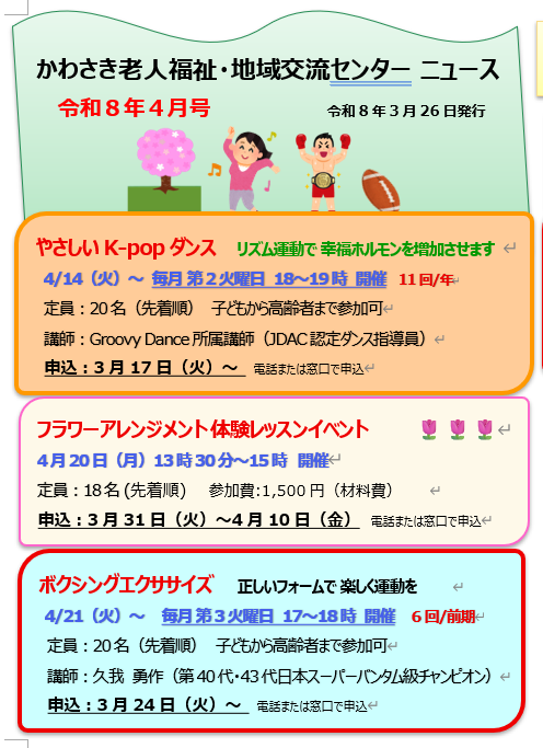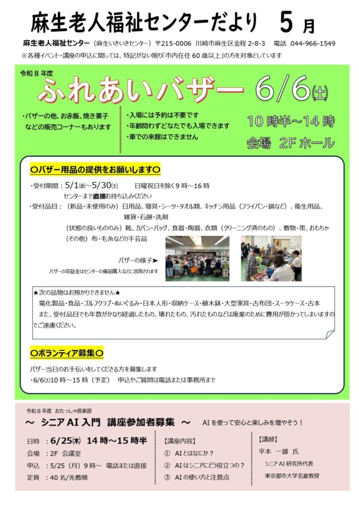 川崎区と高津区には「老人福祉センター」と「地域交流センター」の機能をあわせ持った施設があります。