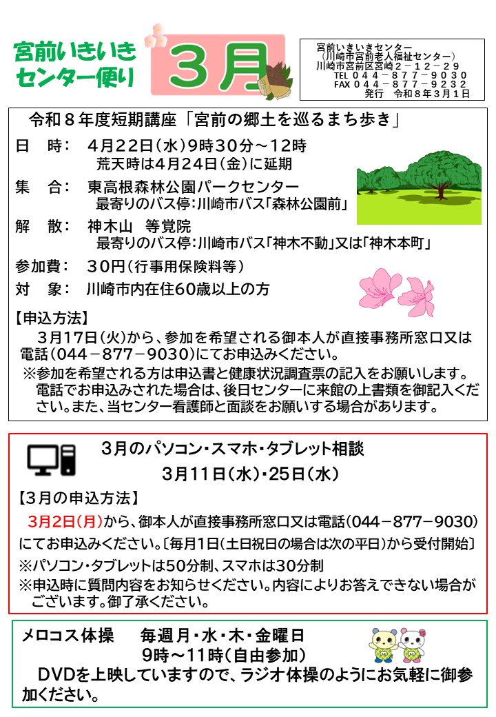 宮前老人福祉センターからのお知らせ