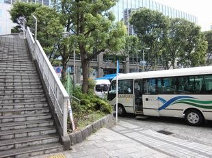 JR南武線武蔵小杉駅北口、バスロータリー歩道橋のたもとに停車します。