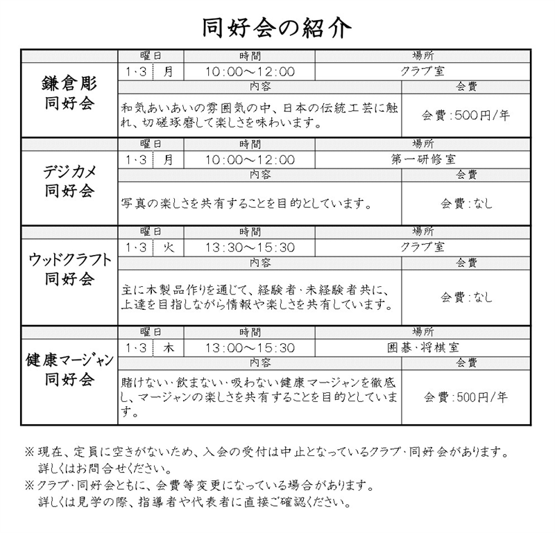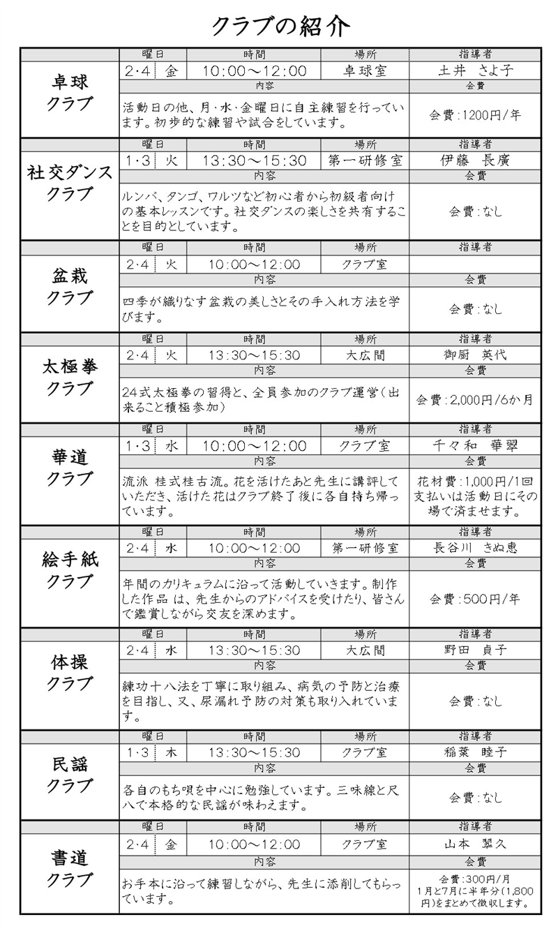クラブ・同好会の活動を通じて利用者同士の交流ができます。