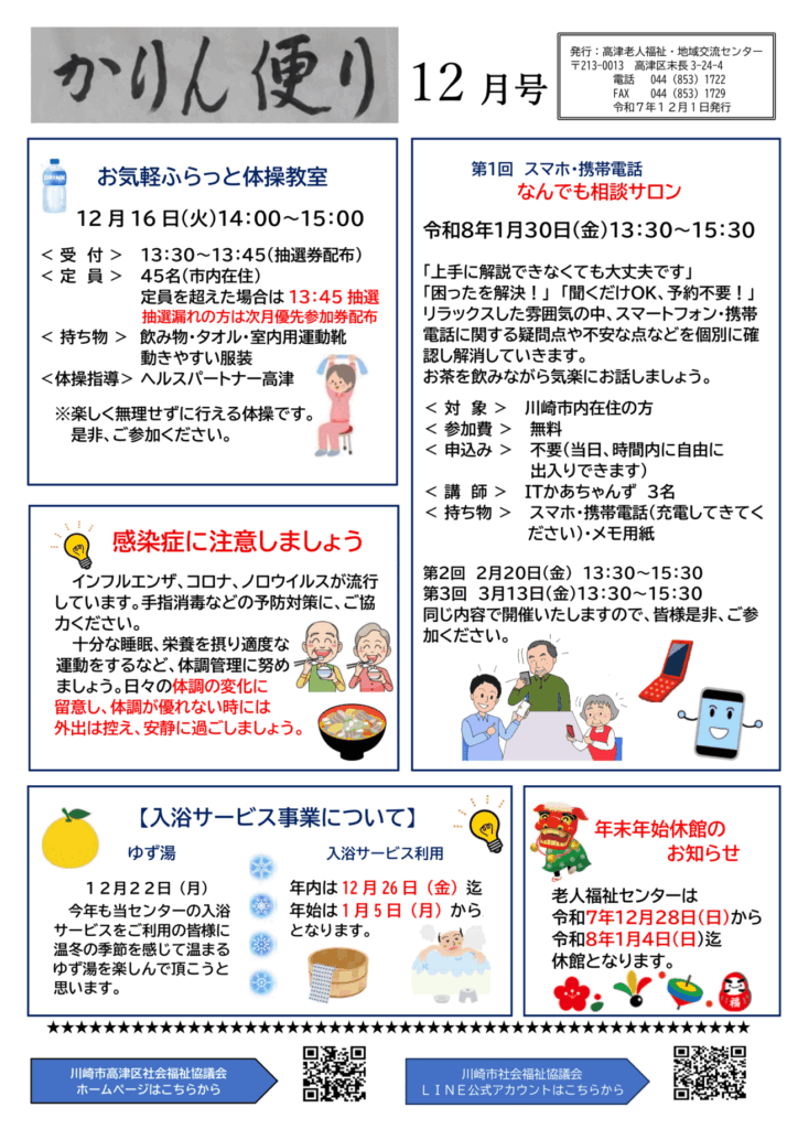 高津老人福祉センター・地域交流センターかりん便り1月号を発行しました。