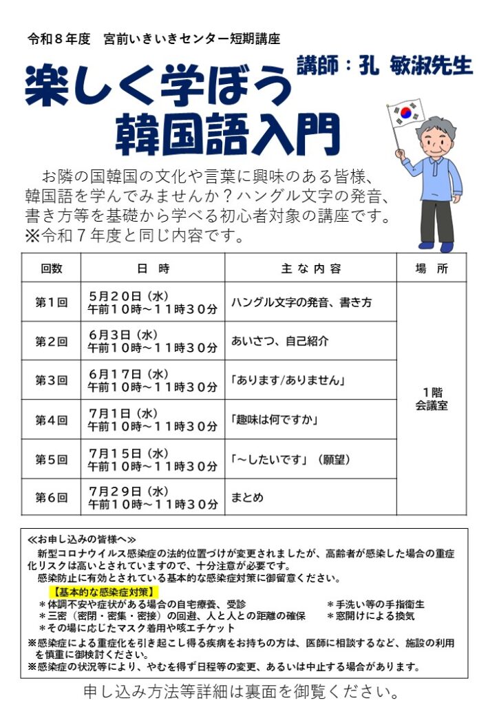 令和8年度「楽しく学ぼう韓国語入門」 受講者募集