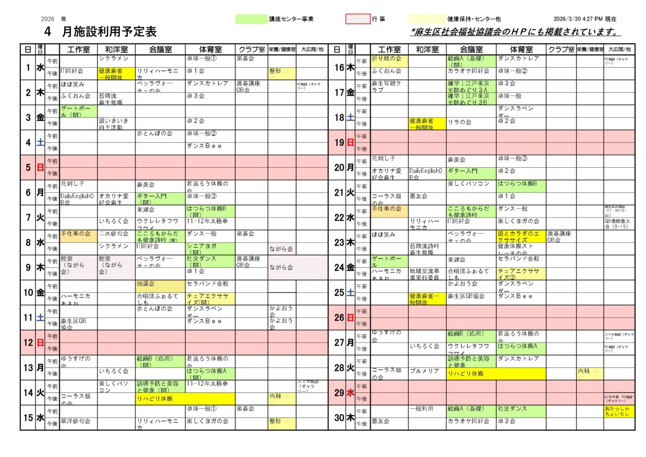 令和8年4月 施設利用予定表