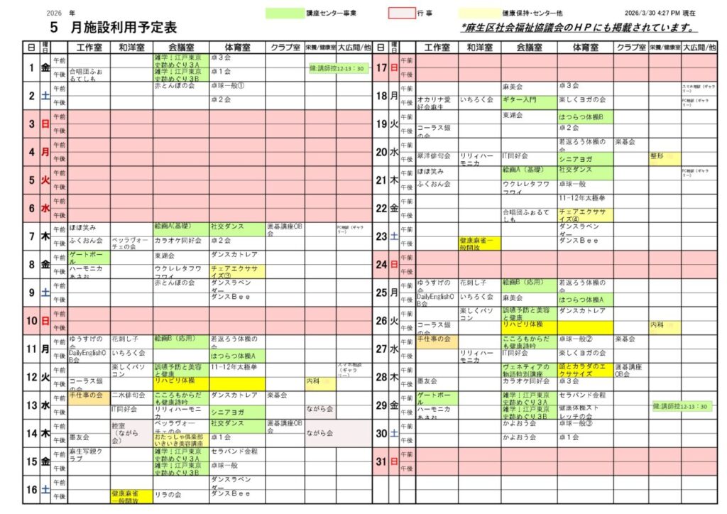 令和8年5月 施設利用予定表
