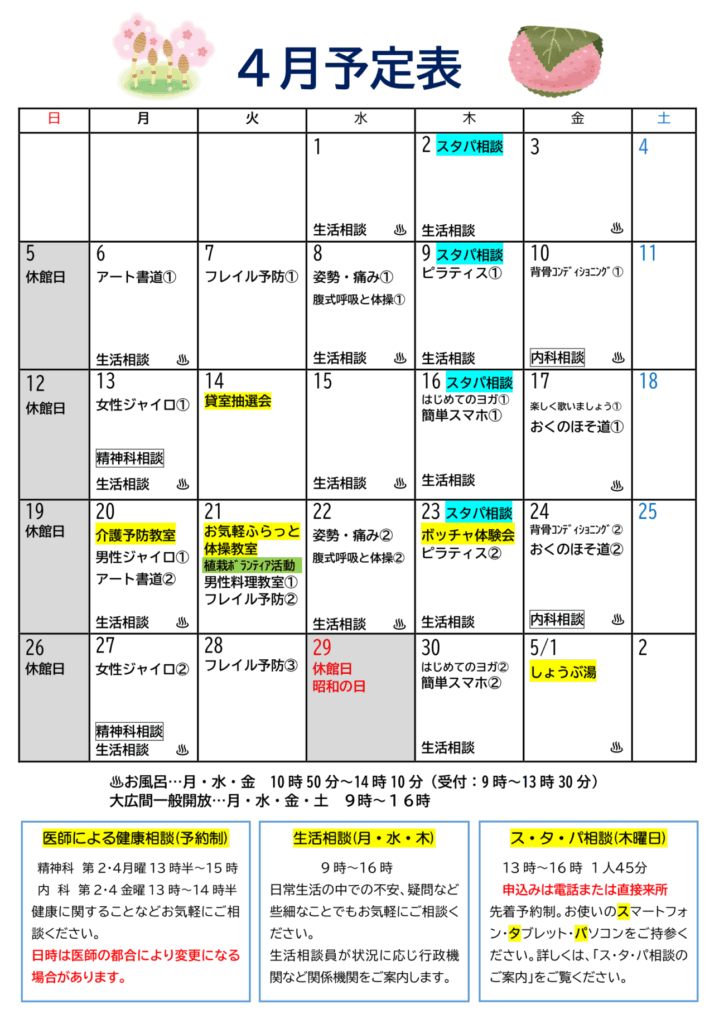 ホーム » お知らせ » 高津老人福祉・地域交流センター » 高津老人福祉センター・地域交流センターかりん便り4月号を発行しました。