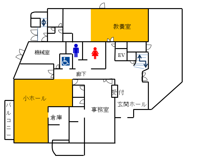 講座や行事、貸室に使用するお部屋です。(教養室・小ホール)