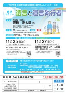 終活セミナー「遺言と遺言執行者(11/25(火)・27(木))」開催のご案内