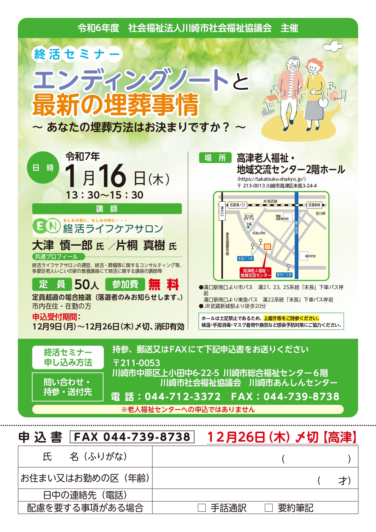 ホーム » NEW終活セミナー「エンディングノートと最新の埋葬事情~あなたの埋葬方法はお決まりですか?~(1/16 高津区)」のご案内