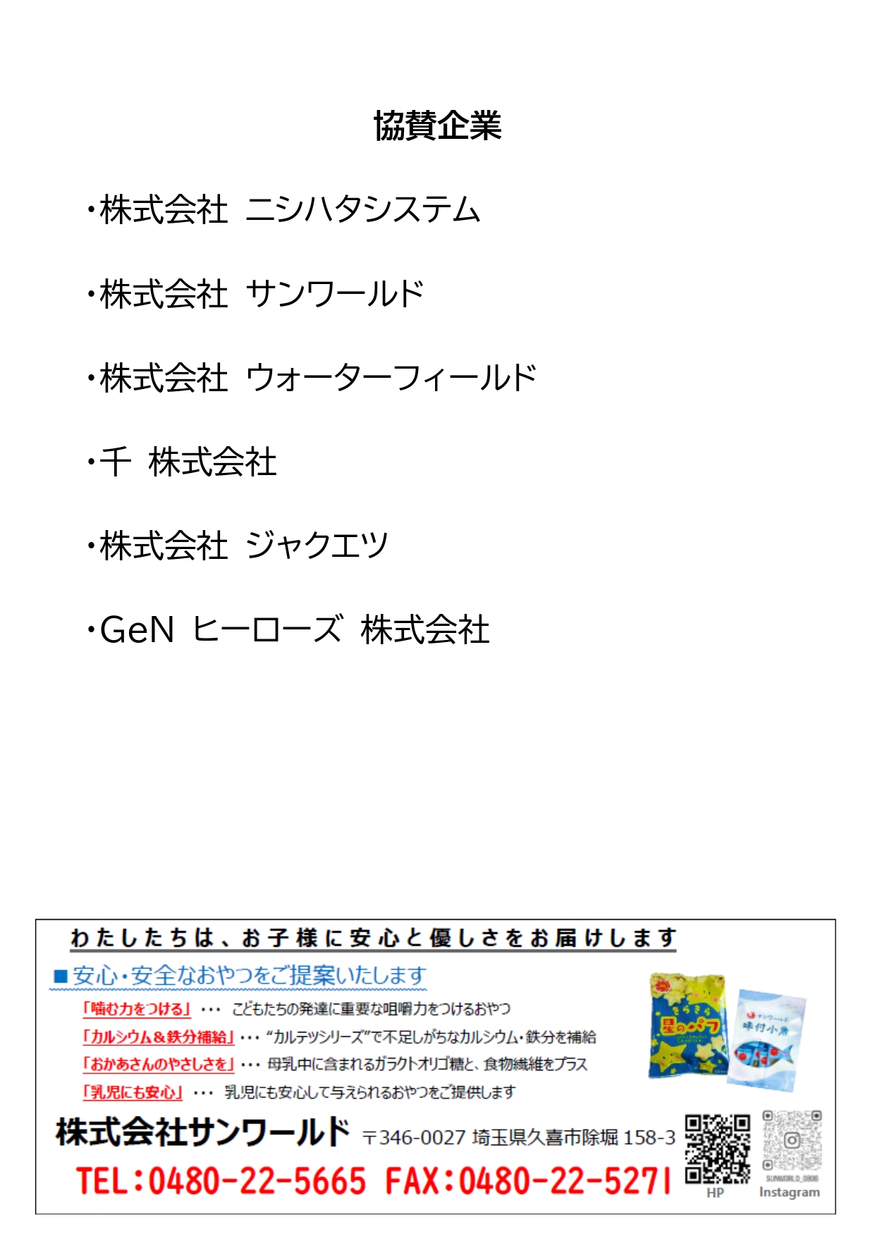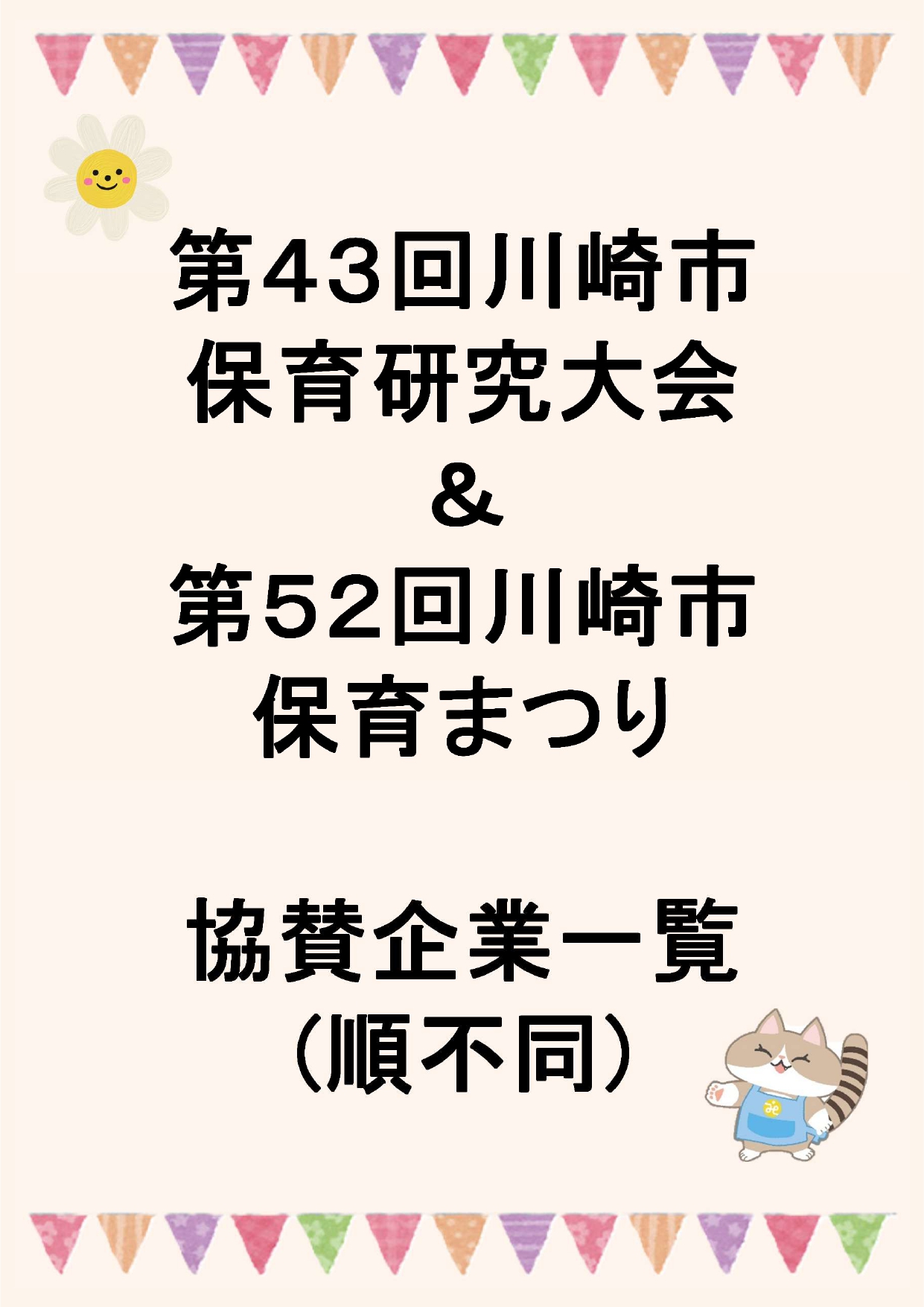 この度は、第43回川崎市保育研究大会及び第52回川崎市保育まつりの開催にあたり、多くの御協賛を賜り、心より感謝申し上げます。