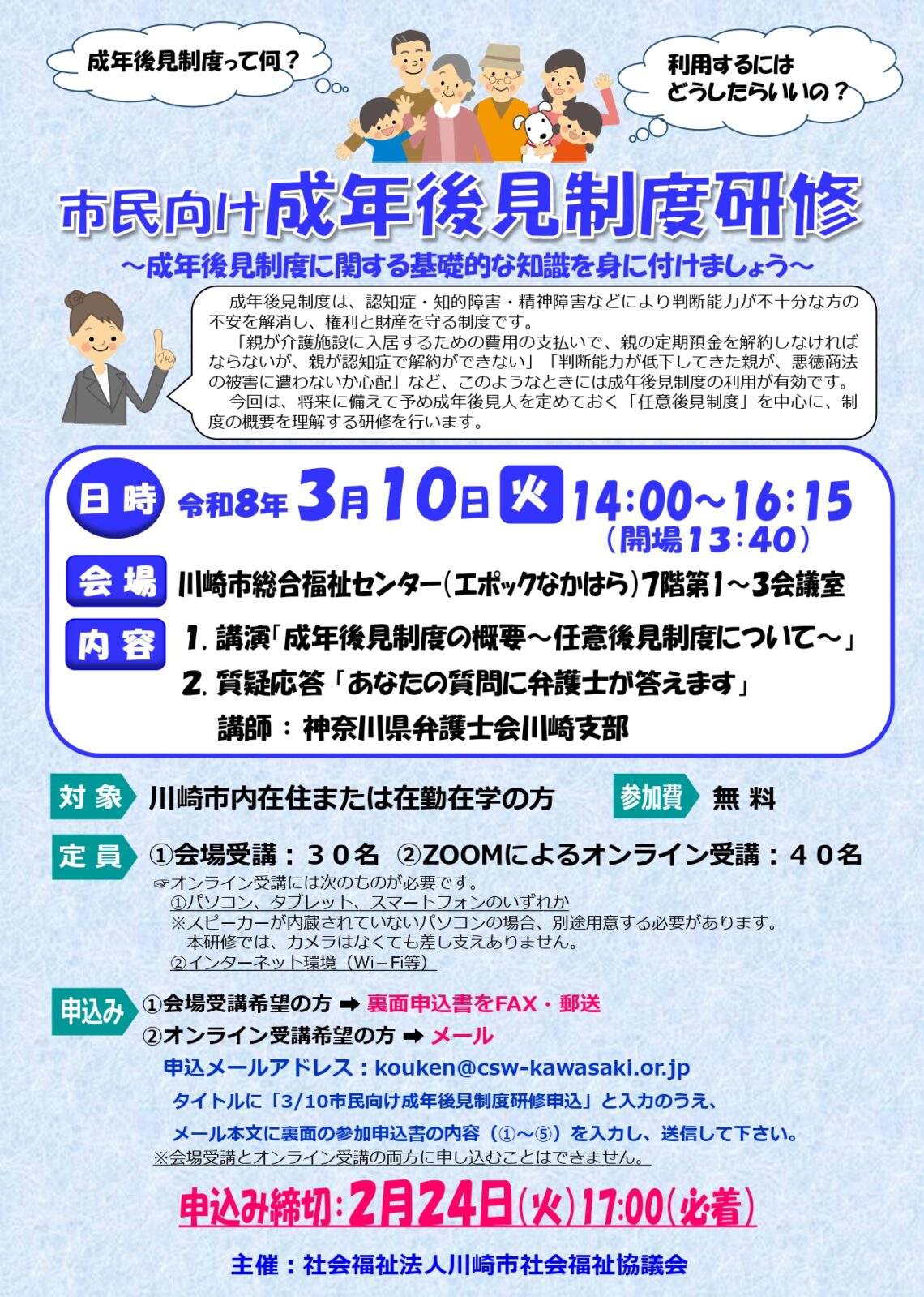 ◆定員 会場受講30名(川崎市総合福祉センター7階 第1~3会議室)